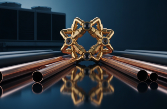 В мультизональных VRF-системах используются разветвители. В отличие от обычного тройника, они имеют особую геометрию, которая равномерно распределяет поток жидкого и газообразного хладагента, предотвращая масляное голодание блоков.